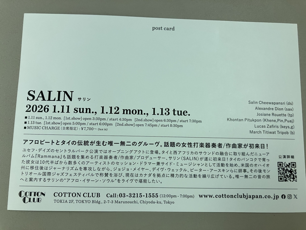 プロのドラマーである、Salinが日本で、初めてライブを開催したので、見に行きました。